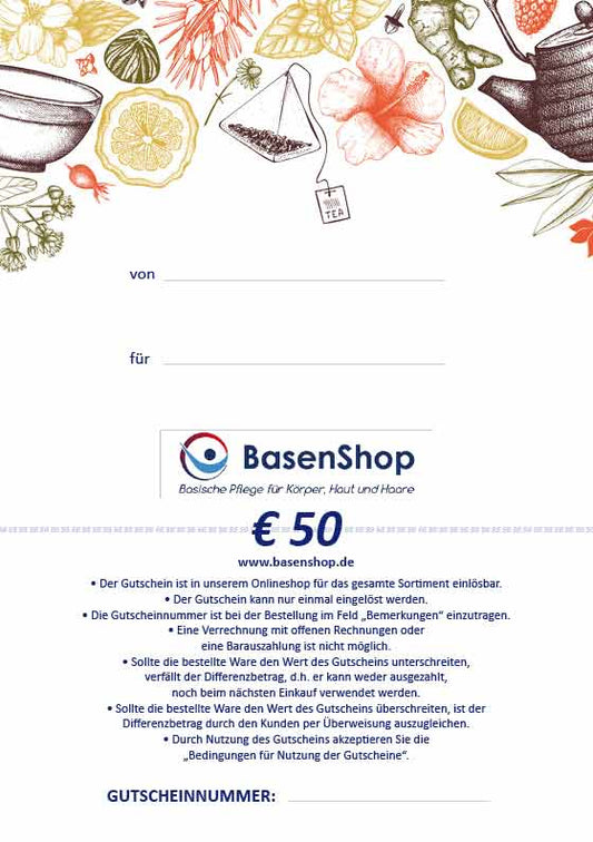 Mit dem Basenshop-Gutschein können Sie sich sicher sein, dass die beschenkte Person sich sehr freuen wird! Und das zu jedem Anlass: ob Geburtstag, Hochzeitstag, Ostern oder Weihnachten. Probieren Sie es aus!